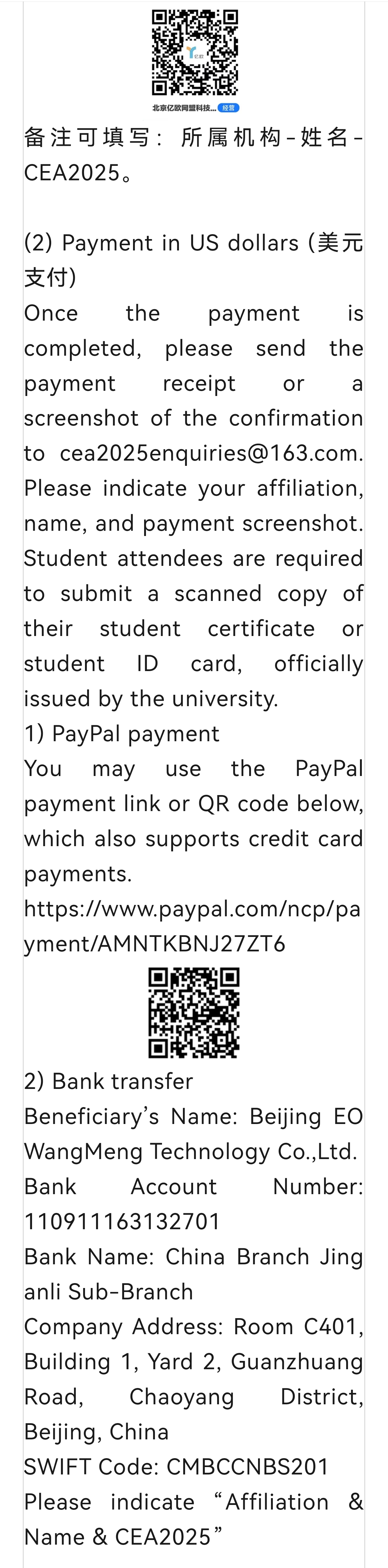 全欧/全英中国经济学会2025年中国学术年会将于2025年4月18日至20日在北京举行。会议旨在邀请全球杰出学者深入探讨新发展格局下的关键经济挑战与机遇,促进跨学科学术对话并展示创新研究成果。本次会议由bw必威西汉姆联官方网站能源与环境政策研究中心(CEEP-BIT)承办。 本次会议主题为“经济前沿:新发展格局下的跨学科、创新与可持续性”。会议鼓励经济学领域各类研究议题,尤其是与其他学科交叉融合的研究,特别是围绕经济发展、创新与可持续性决定因素的跨学科研究,涵盖技术进步、制度框架、政策影响以及各领域市场动态等方面。会议同样欢迎聚焦实际问题和应用场景的研究,例如应对气候变化的经济政策或促进全球供应链创新策略等。 会议接收论文全文或摘要投稿的截止日期为2025年2月28日,英文或中文投稿均可。所提交的论文全文或摘要应包含以下信息:论文标题、全部作者姓名及其所属机构、报告人姓名及电子邮箱、JEL分类码及关键词等。若投稿最终被接收,摘要将刊印于会议手册中。组委会将依据投稿的创新性与学术贡献对论文进行评审,并于2025年3月10日前通知报告人,每位报告人仅限报告一篇论文。 共同主办单位 ● 全欧/全英中国经济学会 ● bw必威西汉姆联官方网站能源与环境政策研究中心 ● betway西汉姆联官网 ● 中国教育部碳中和系统与工程管理国际合作联合实验室 ● 碳中和系统工程北京实验室 ● 中国国家自然科学基金“能源与气候变化”基础科学中心项目 ● 北京亿欧网盟科技有限公司 大会主席 魏一鸣 教授 | bw必威西汉姆联官方网站 D’Maris Coffman 教授 | 伦敦大学学院 组委会主席 米志付 教授 | 伦敦大学学院 廖 华 教授 | bw必威西汉姆联官方网站 唐葆君 教授 | bw必威西汉姆联官方网站 余碧莹 教授 | bw必威西汉姆联官方网站 赵鲁涛 教授 | bw必威西汉姆联官方网站 会议专家 待定 会议支持期刊 本届会议接收中、英文投稿,部分优秀论文经作者同意后将按照主题和期刊要求推荐至会议支持期刊。会议支持期刊包括(按照首字母排序,不分先后): ●《bw必威西汉姆联官方网站学报(社会科学版)》 ●《能源与气候变化》 ● Energy and Climate Change ● Energy Economics ● Journal of Chinese Economic and Business Studies ● Journal of Chinese Economic and Foreign Trade Studies ● Journal of Modelling in Management ● Journal of the Asia Pacific Economy ● Structural Change and Economic Dynamics ● 其他期刊(征集中) 优秀学术论文评选 会议将评选出优秀学术论文,并于会期内公布获奖名单,获奖作者将获颁证书。 重要时间节点 ● 论文或摘要提交开始日期:2025年1月1日 ● 论文或摘要提交截止日期:2025年2月28日 ● 论文或摘要评审结果通知:2025年3月10日 ● 早鸟优惠注册及缴费截止日期:2025年3月15日 ● 注册及缴费截止日期:2025年4月10日 ● 现场报到及欢迎活动:2025年4月18日 ● 会议开幕式及报告:2025年4月19—20日 请将稿件发送至指定邮箱: cea2025conference@gmail.com 咨询邮箱: cea2025enquiries@163.com 会议服务费 参会人员须缴纳会议服务费。为便于沟通交流,本次会议的所有活动将于北京友谊宾馆举行。会议服务费标准如下。所有参会人员须通过电子邮件进行注册。 会议服务费支付方式 完成缴费后请将下述注册信息发送至cea2025enquiries@163.com:姓名、单位、联系电话、付款凭证、学生证扫描件(如果是以学生身份注册)。 如需要开具发票,请提供发票购买方、税号、接收电子发票的电子邮箱。发票的项目名称为 会议服务费,销售方名称为 北京亿欧网盟科技有限公司。 (1)人民币支付 1)银行账户转账 户 名:北京亿欧网盟科技有限公司 开户行:招商银行北京分行静安里支行 帐 号:110911163110301 备注可填写:所属机构-姓名- CEA2025。 2)支付宝扫码支付(可支持信用卡支付) 会议酒店 会议全程在北京友谊宾馆举行。它不仅是一家酒店,也兼具花园和博物馆的特色,融合商务、学术、美食与文化于一体。 地址:北京市海淀区中关村南大街1号 邮编:100873 网站:www.BJfriendshiphotel.com 客房预订:+86-10-68498080 地图与交通: https://www.bjfriendshiphotel.com/contact.html 住宿说明 (1)北京友谊宾馆(会议举办地点) 为确保享有本次 CEA 年会所提供的优惠房价(每晚 600~700 元,依房间类型有差异),请尽早预订。酒店优惠房源有限,先到先得。您可以通过扫描下方二维码预订友谊宾馆迎宾楼及怡宾楼的房间。 (2)北京湖北大厦 为确保享有本次 CEA 年会所提供的优惠房价(每晚 580~700 元,依房间类型有差异),请尽早预订。酒店优惠房源有限,先到先得。预订时,请告知酒店您是bw必威西汉姆联官方网站 CEA 年会与会人员,以便享受相应优惠价格。联系人及手机:王经理17610969515。该酒店距离会议举办地点约 1.9 公里。酒店网址:http://www.bjhbds.com.cn/contact.html (3)在会议地点周边还有许多其他酒店可供选择。您可通过携程网(www.ctrip.com)或其他酒店预订及地图app进行查询。 附录:CEA及CEEP-BIT介绍 全欧/全英中国经济学会(The Chinese Economic Association (CEA) Europe/UK)成立于1988年,是独立的非营利性学术组织,也是欧洲最具影响力的聚焦中国经济发展的学会之一,其成员包括对中国经济有兴趣的研究人员、学生和企业高管。CEA致力于加深公众对中国经济发展的理解,并推动高质量的相关研究,主要活动包括出版季度简报和不定期的讨论文件,以及举办年
