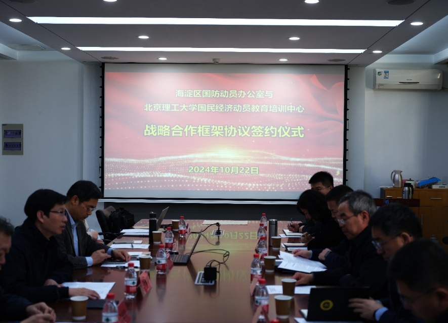 为深入贯彻落实党的二十届三中全会精神,努力开创一体化国家战略体系和能力建设新局面,10月22日下午,海淀区国防动员办公室(简称“海淀区国动办”)与bw必威西汉姆联官方网站国民经济教育培训中心(简称“北理工动员中心”)举行战略合作框架协议签约仪式。海淀区国动办书记孙鹏利、主任杨军昌等一行7人,betway西汉姆联官网副院长叶选挺、北理工动员中心孔昭君教授等参加签约仪式。仪式由北理工动员中心党支部书记刘铁忠主持。