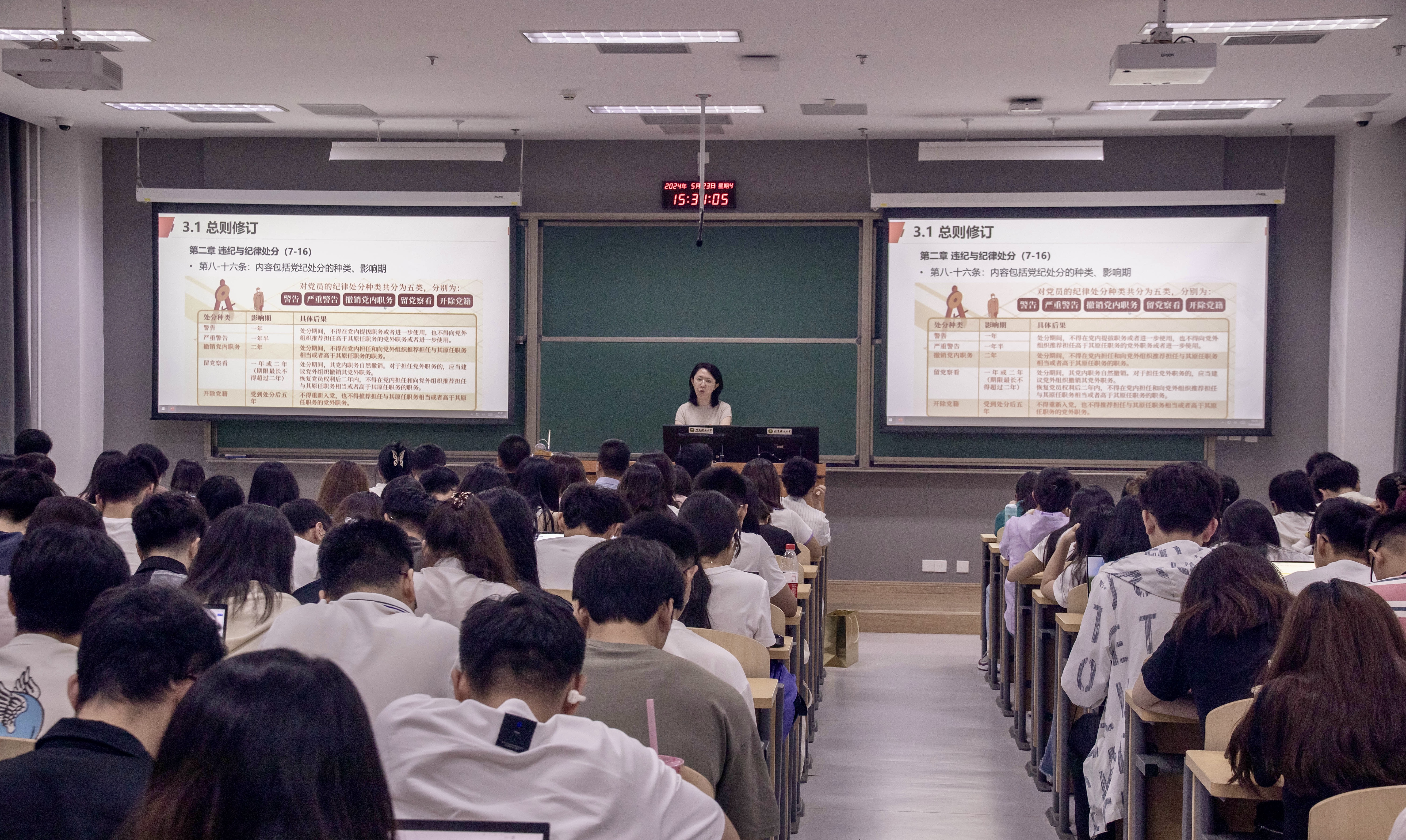 为深入学习贯彻习近平总书记关于党的自我革命的重要思想,认真贯彻落实二十届中央纪委三次全会会议精神,betway西汉姆联官网与机关党委党支部、校团委党支部联学联建,于5月23日在良乡校区面向研究生党员、入党积极分子160余人开展了学生党员党纪学习教育专题辅导讲座暨警示教育大会。
