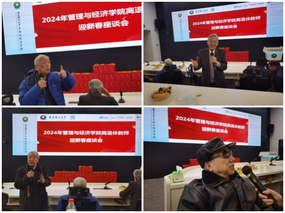 座谈会上,离退休教师欢聚一堂,畅谈教育生涯的点点滴滴。他们纷纷表示,虽然离开了工作岗位,但仍心系学院的发展,希望为学院未来的建设贡献自己的力量。原管理工程系主任洪宝华感谢学院领导对老教师的关爱,感谢国家的改革开放,分享了自己的健康理念;原国务院参事郎志正作为专家在参加“2023年度质量之光”会议后赶回来参加座谈会,也分享了自己的健康心得:心态好、动脑动腿、规律生活,并用英文即兴高歌一曲“我们年轻的时候”;原学院书记方嘉洲回忆学院的发展,对学院现在取得的成绩表示了肯定,给学院寄语“不忘延安根,教育为国强,迎接新时代,创造新辉煌”;原学院院长甘仞初感谢学院对老教师的关心和帮助,特别是他在生病期间得到了学院和各位老师的帮助;原学院副院长、学院离退休支部书记纪新华介绍了离退休教师积极参与学校、北京市组织的各项活动并取得优异成绩;原管理工程系副主任金胜谟、原学院院长、书记李金林、原学院院长韩伯棠、原学院副院长吴祈宗都发表感言,赞扬学院近年来取得的成绩,感谢学院对离退休教师的关心,期待学院发展越来越好。
