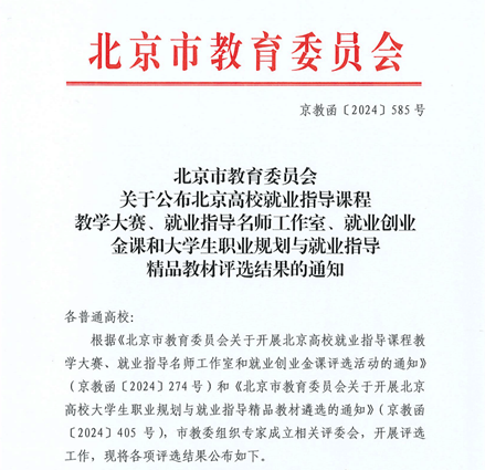 近日,由北京市教育委员会主持的2024年北京高校就业创业金课评选圆满收官,10堂优秀课程被评为北京高校就业创业金课,我院《工商管理社会实践课》成功获评。该金课由北京市教委专家评委会对各高校推荐的就业创业课程的课程大纲、教案设计、课件、教学实录视频等相关材料及课程负责人现场答辩情况进行审阅遴选并公示,旨在激发高校就业指导教师的创新精神,推动就业指导课程的优化与升级,以更好地适应当前学生多样化的就业指导需求。