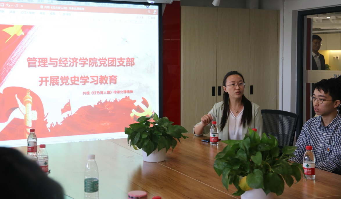 为深入学习贯彻习近平新时代中国特色社会主义思想,积极落实学院党委关于党团共建活动的部署要求,管理与经济学院本科生第五党支部以及共建团支部在5月18日上午于甘棠社区114党建室开展主题为“共观红色育人路、同传北理工精神”的党史学习教育。参加活动的有原管理与经济学院党委书记方嘉洲、管理与经济学院副书记副院长彭明雪及40余名学生党、团员,活动由组织委员李雯白主持。