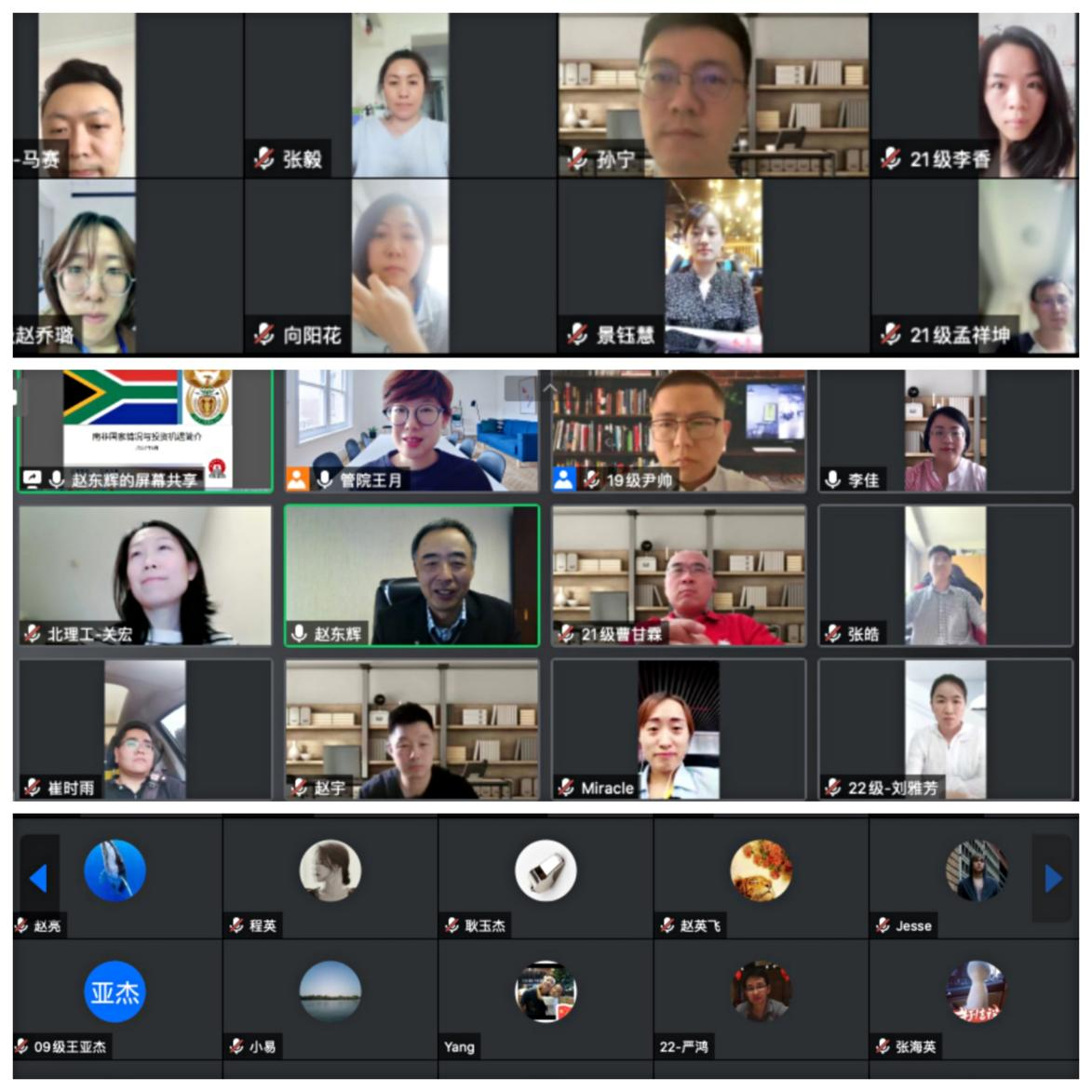 关宏代表学院对参与活动的师生、校友表示欢迎,向赵东辉及海内外校友对学院的支持与关注表示感谢。她谈到,两国非常重视双边合作以及在国际事务中的共同关注的问题,中南友好互利合作给两国企业、民众带来实实在在的收益。希望通过今天的分享,能让更多校友了解南非风土、文化以及投资经营的风险和机遇,助力自身的发展。她祝愿校友和家人平安健康、事业发展蒸蒸日上,期待再聚北理!