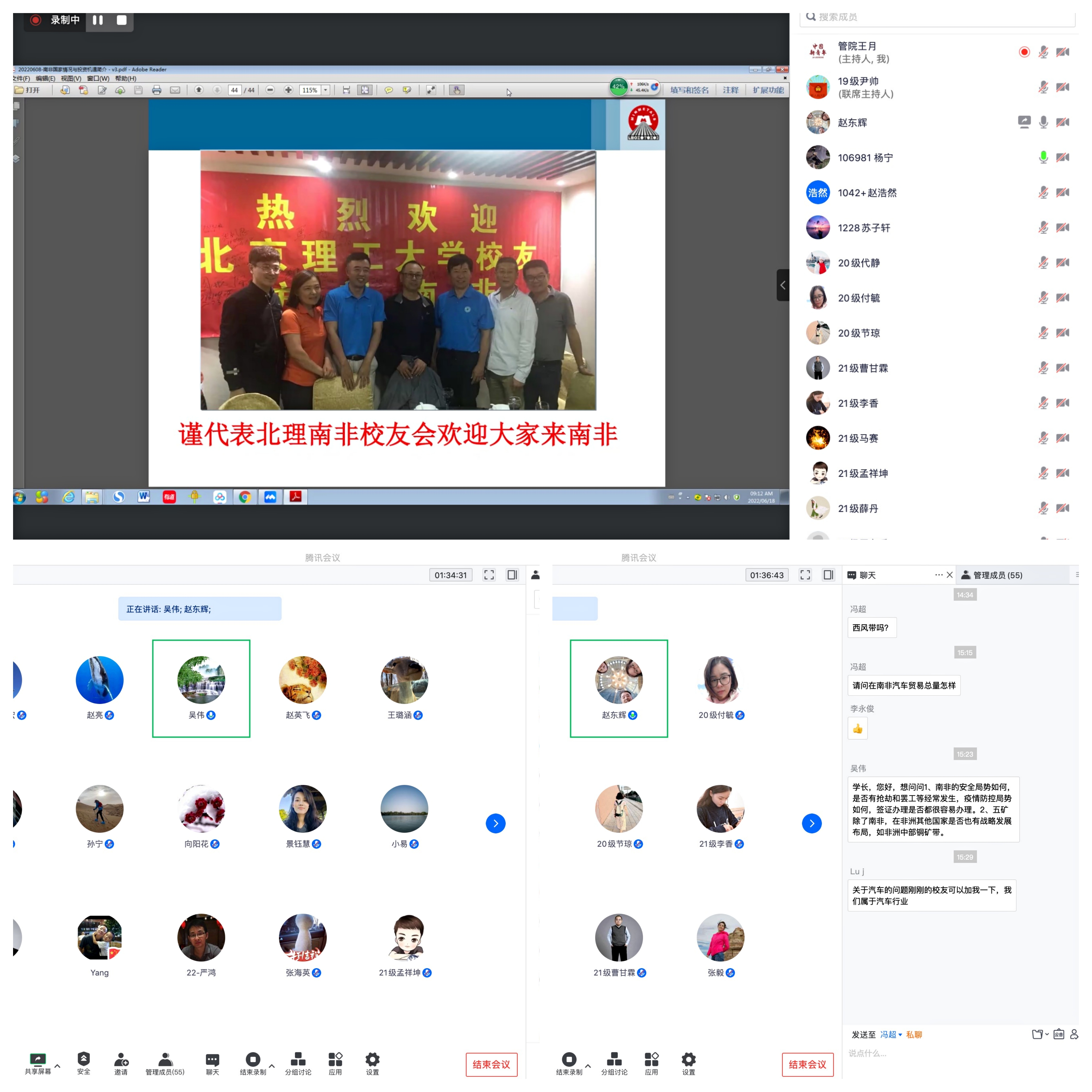 交流环节,赵东辉与校友们就“中国五矿在南非的生产与经营管理”、“国产汽车在南非的发展情况”、“中资企业在南非的投资安全”等方面进行了深入的交流。大家纷纷表示收获颇多,受益匪浅。