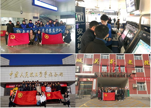 学习小组利用课余时间,带动支部同学以及低年级团支部学生积极参与了参观中国人民抗日战争纪念馆、北大五四红楼、中央民族的大学56创新创业中心、城关敬老院慰问老人和房山线地铁服务志愿活动。