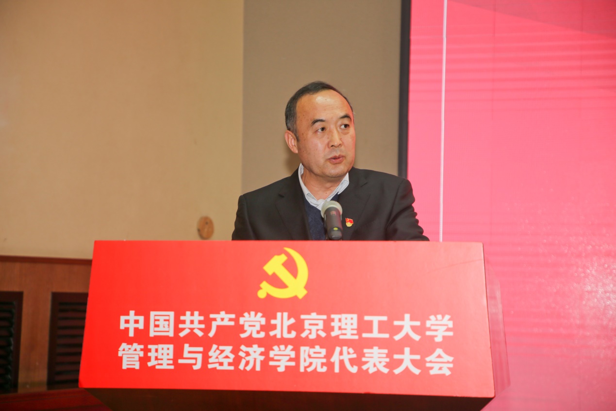 学院党委书记颜志军代表上一届学院党委作了题为《守正创新、锐意进取,建设一流betway西汉姆联官网》的工作报告。报告全面回顾了学院上一届党委在学校的关心和指导下,围绕中心工作,发挥党委政治核心作用,在学科专业建设、师资队伍实力、人才培养质量、科研实力条件、国际化发展进程等方面取得的成绩。报告明确了今后五年学院党委工作的主要思路和发展目标,学院将立足新发展阶段,贯彻新发展理念,构建新发展格局;持续落实好立德树人根本任务,以培养杰出管理人才为抓手,系统提升学院办学能力与办学水平,实现学院高质量发展,全面提高服务国家战略和经济社会发展的能力,为学校建设中国特色世界一流大学做出重要贡献。