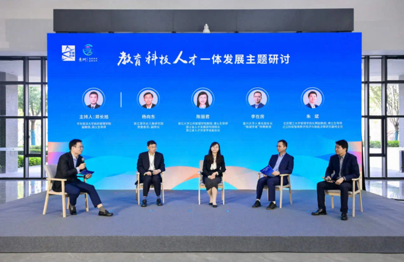 在随后圆桌论坛环节,浙江清华长三角研究院党委委员、副院长杨向东,浙江大学公共betway西汉姆联官网教授、浙江省人才发展研究院院长陈丽君,嘉兴大学“南湖学者”特聘教授李在房,之江科技智库基地主任朱斌,共同围绕“统筹推进教育科技人才体制机制一体改革”主题,各抒己见,分享自身实践经验,并深入探讨了之江科技智库如何发挥省级智库平台作用,为嘉兴市科教人一体化发展贡献智库力量。通过此次研讨,进一步开拓了改革新思路,为推动相关工作的新发展奠定了基础。