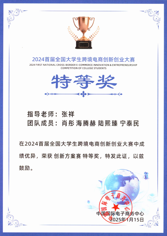 2024首届全国大学生跨境电商创新创业大赛,是由商务部中国国际电子商务中心主办、阿里巴巴国际站承办的全国性竞赛,旨在为我国企业开展跨境电商提供创新解决方案,培养跨境电商创新人才。大赛自2024年10月启动,历时约3个月,吸引了来自524所高校的3225支队伍、超过万名师生参赛。经过初赛、复赛、决赛严格评审和现场答辩,最终大赛三个赛道产生了4支特等奖队伍,北理工学生团队获得创新方案赛道唯一的全国特等奖。
