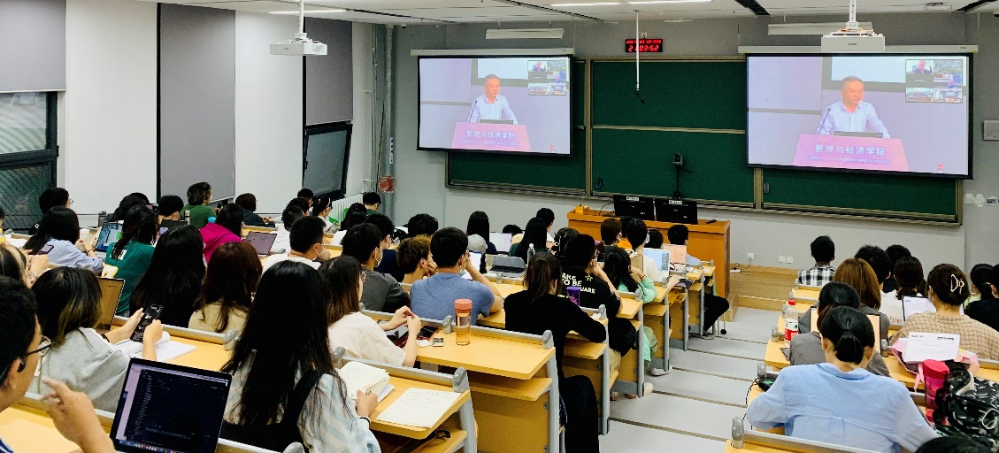 诺德豪斯教授在报告中介绍了全球碳排放现状,指出全球减排效果不显著,以及全球低碳转型面临的问题,发展低碳技术激励不足的挑战,提出采用较高并持续增长的全球统一碳价来促进减排,并针对“搭便车”问题提出了解决方案,在报告结束后,回答了师生提出的问题。诺德豪斯教授严谨的治学态度和大师风范在场师生留下了深刻印象。