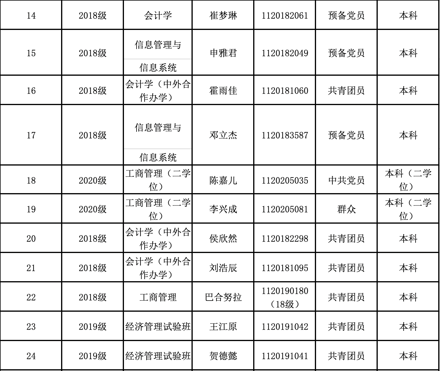 优秀学生: