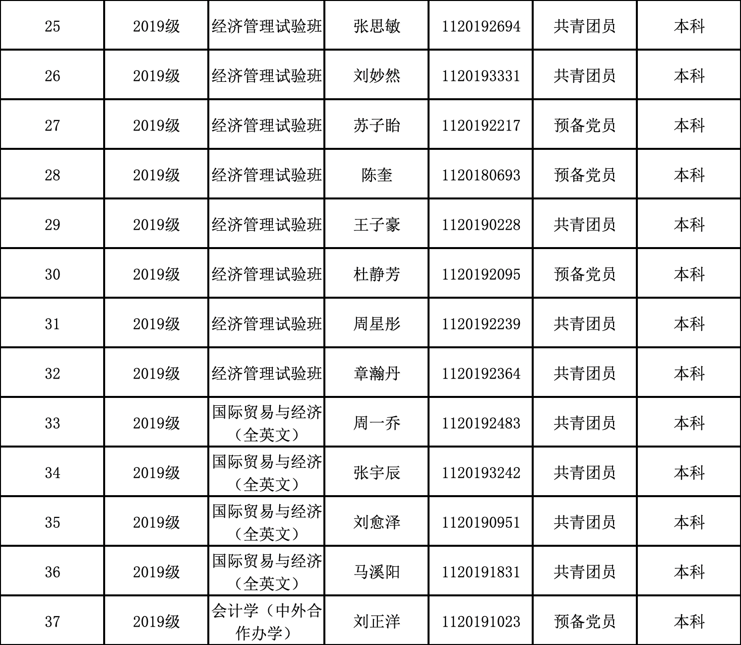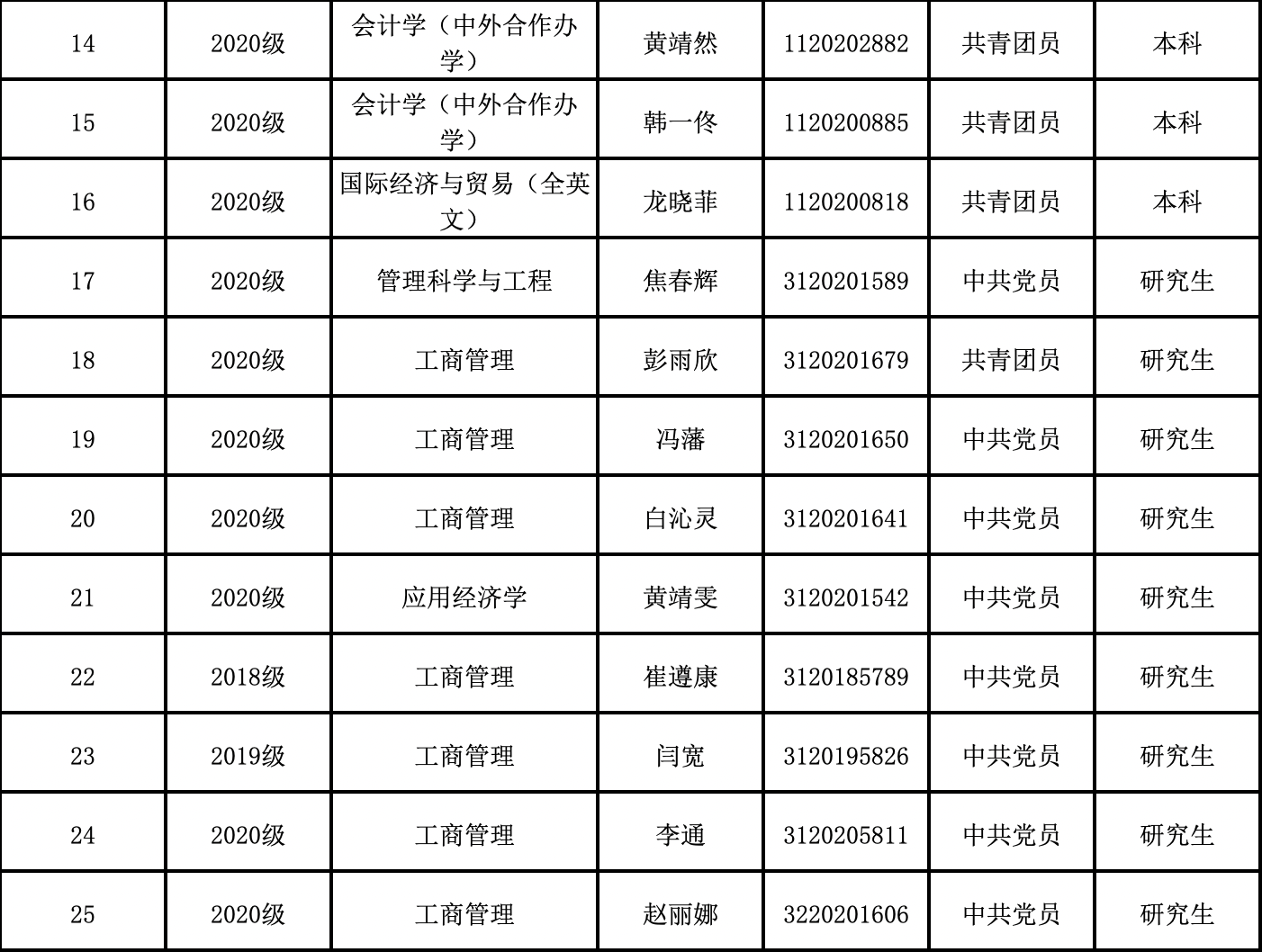 优秀学生: