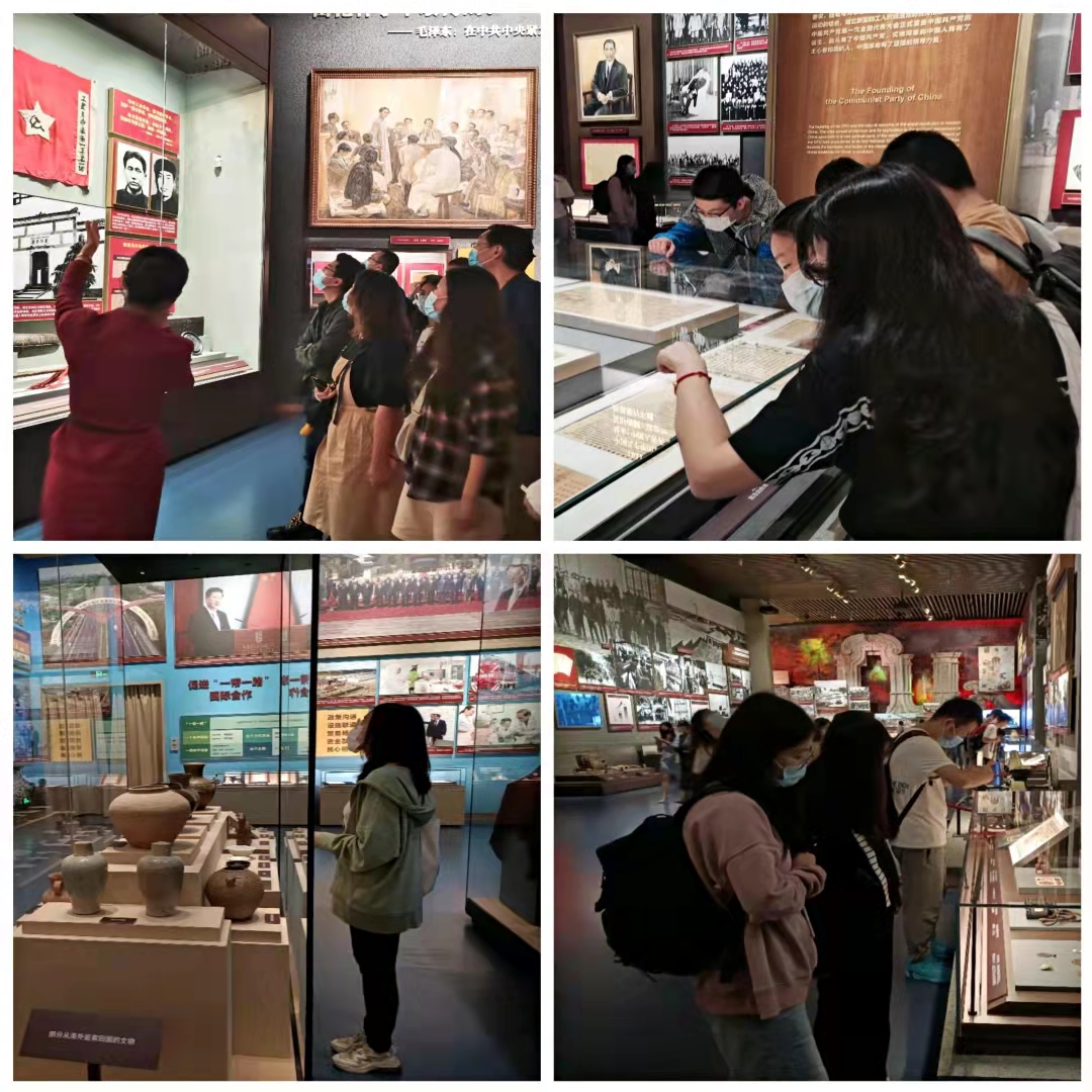 中国共产党历史展览馆是一座综合性的党史展览馆,一座权威系统、庄严庄重的党史教育殿堂,全方位展示了中国共产党的奋斗历程。步入展厅,在讲解员带领下,同学们回顾了中国共产党一百年来为人民谋幸福、为民族谋复兴的奋斗历程。展厅展示了从建立中国共产党到全面建成小康社会的发展历程,一幅幅图片记载着中国共产党人的奋斗岁月,一件件文物实物再现经典历史瞬间,通过各种历史资料全过程、全景式地展现了中国共产党波澜壮阔的百年奋斗历程。